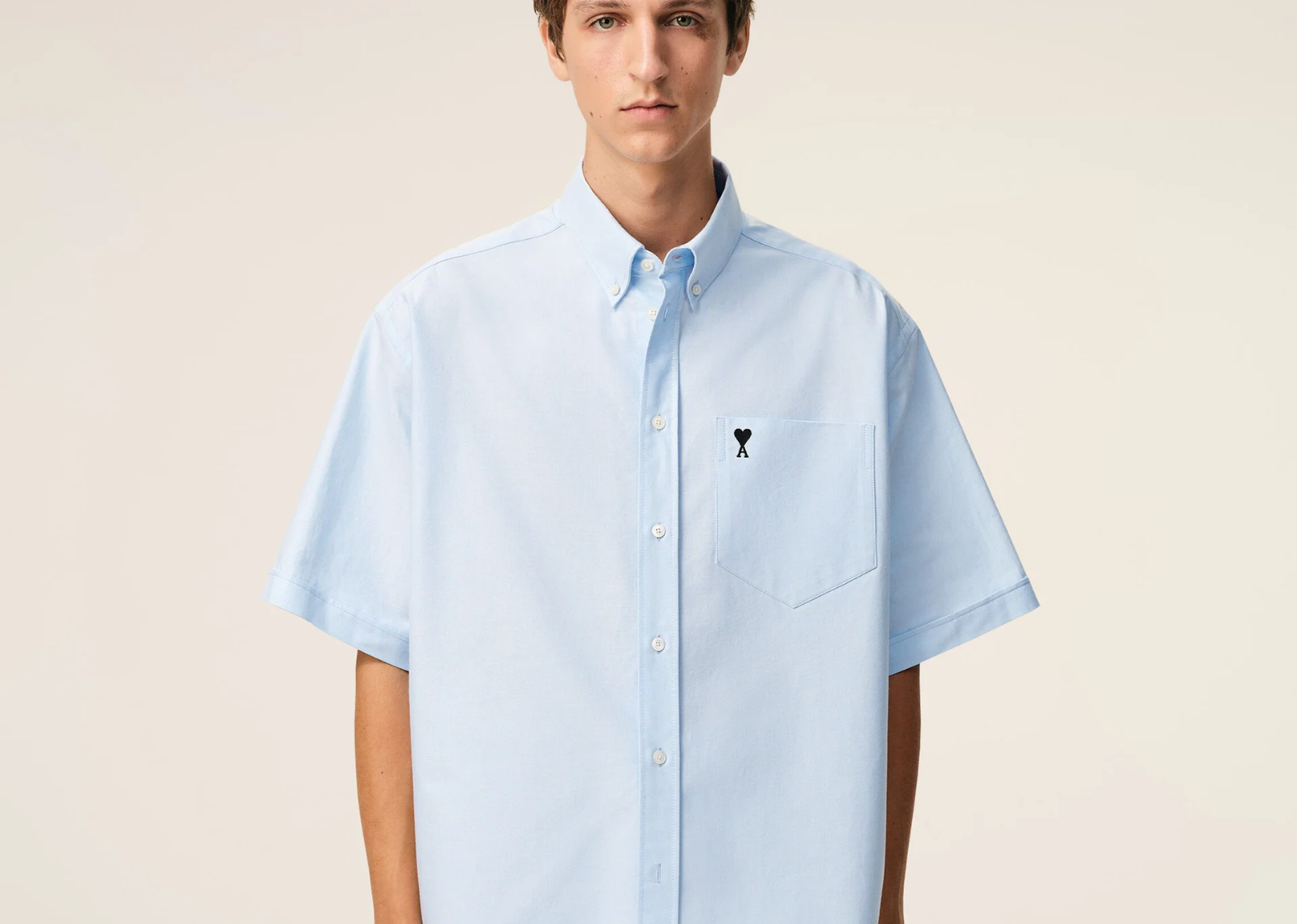 Ami Paris Ami De Coeur Boxy Embroidered Shirt Sky Blue