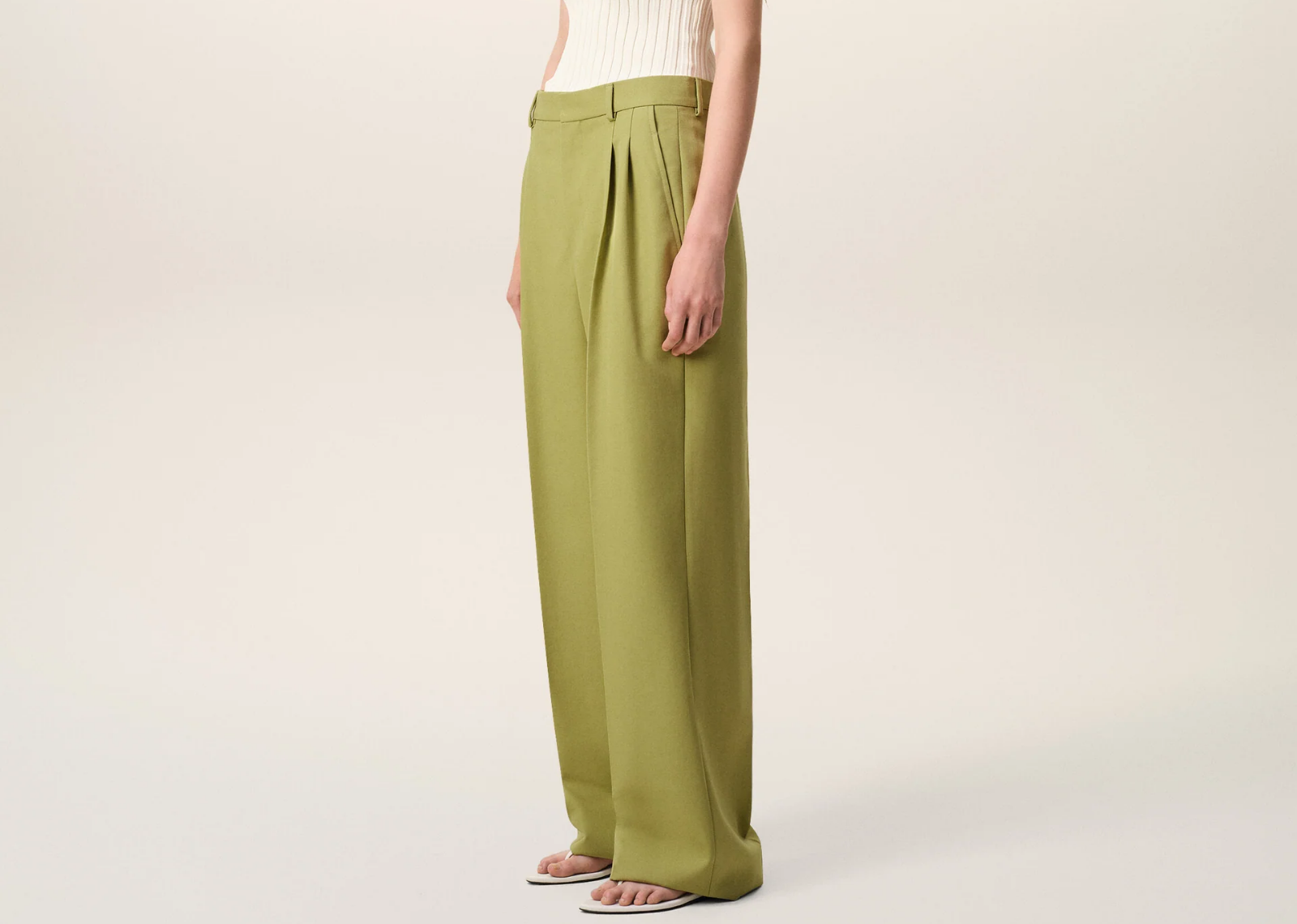 Ami Paris New Wool Low Waist Wide Trousers Green