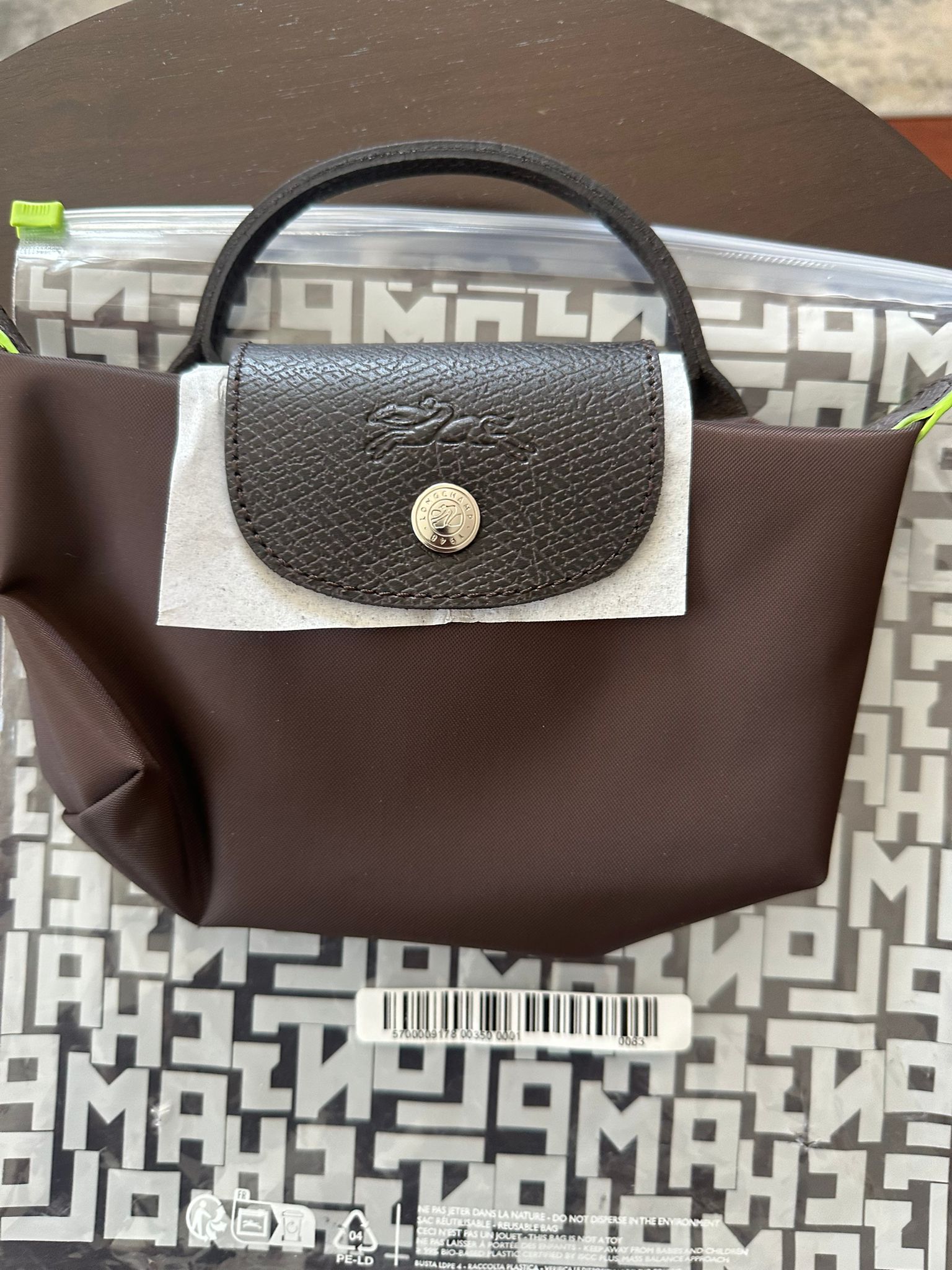 Longchamp Le Pliage Green Pouch with handle Mocha