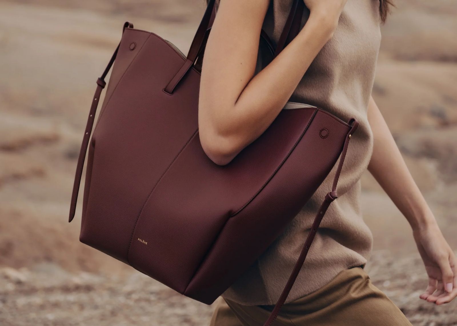 Polène Cyme Tote Edition Textured Black Cherry