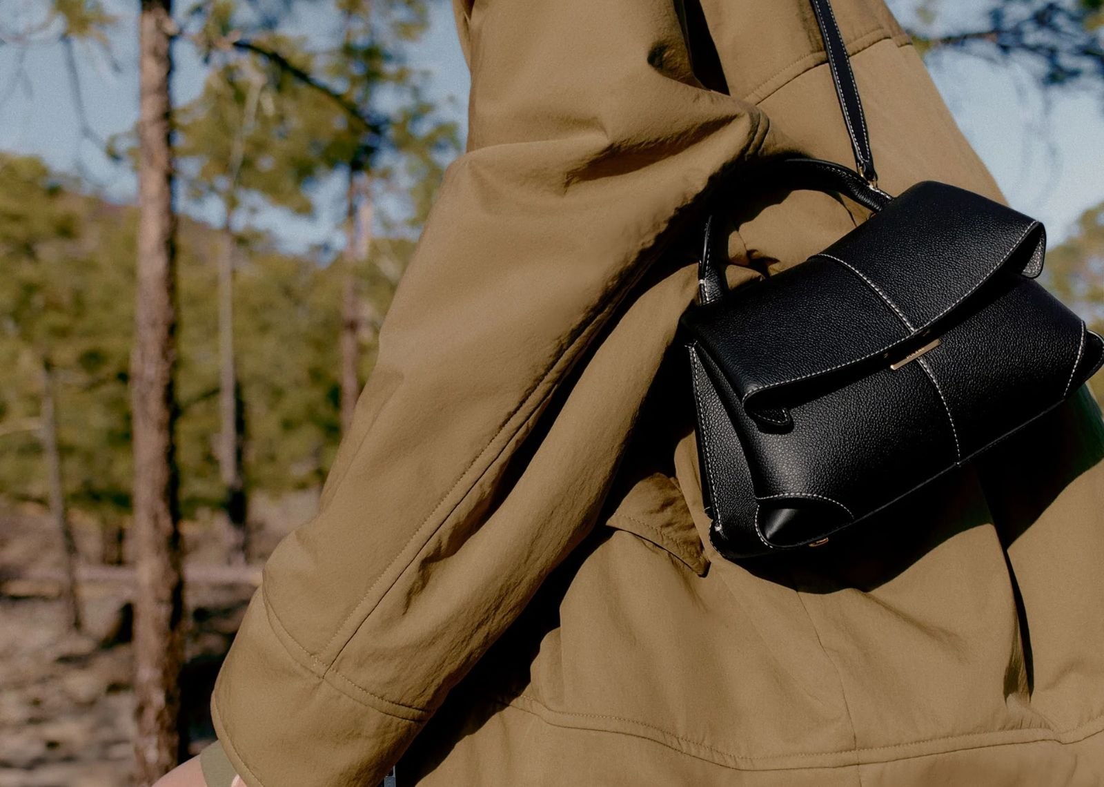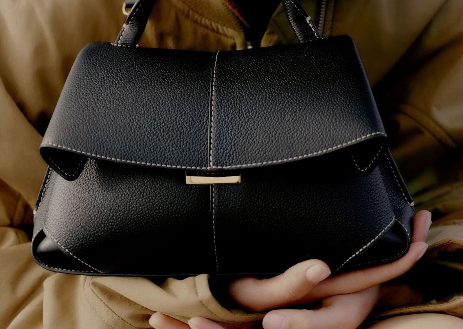 Polène Mokki Mini Edition Textured Black with Ecru Stitching