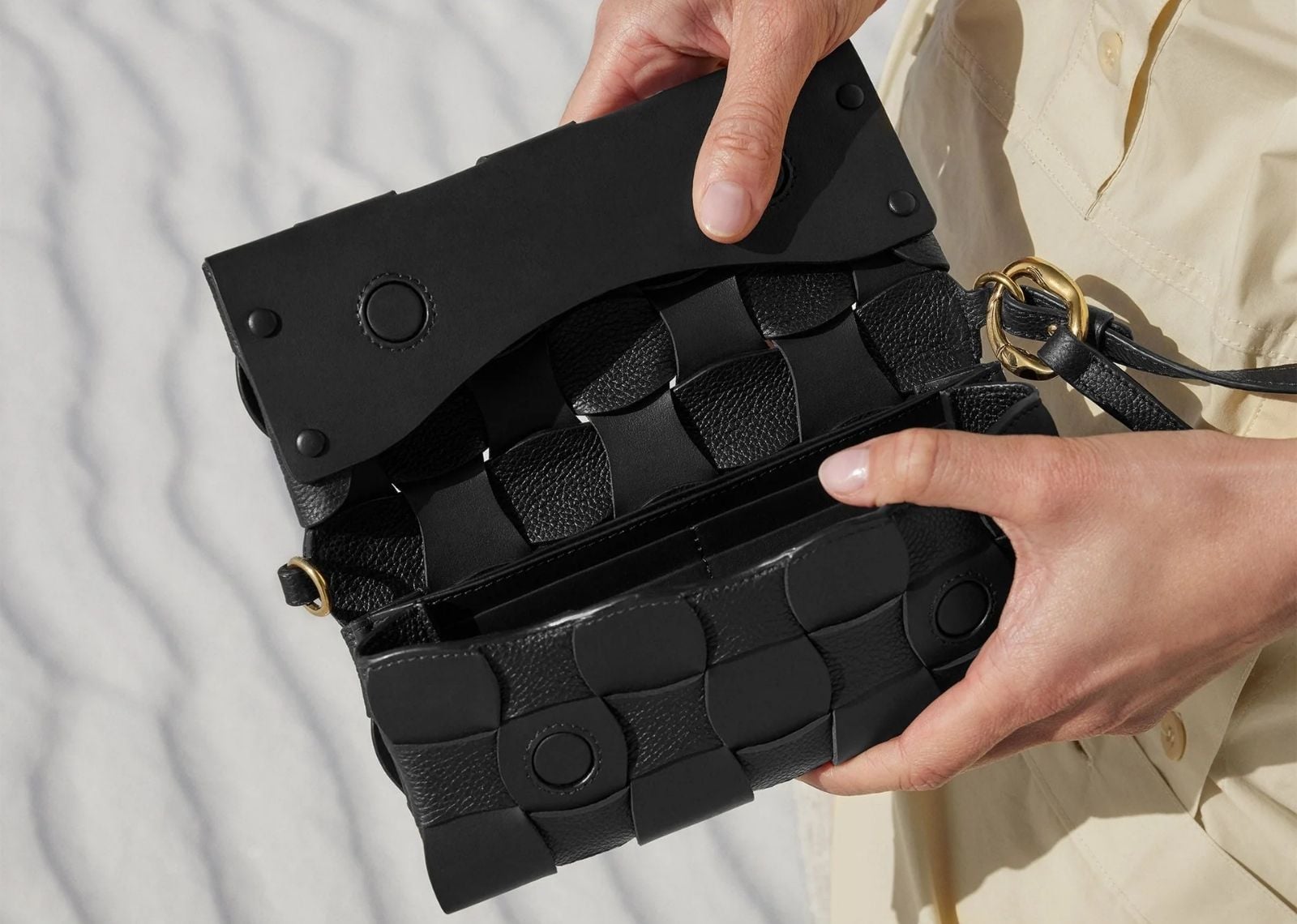 Polène Neiti Edition Duo Black çantası, zarif tasarımı ve şık dokusuyla her anınıza sofistike bir dokunuş katıyor. Siyah rengiyle her türlü kıyafetle mükemmel uyum sağlayan bu çanta, hem günlük kullanım hem de özel davetler için ideal bir seçimdir. Kullanışlı bölmeleri sayesinde eşyalarınızı düzenli bir şekilde taşımanızı sağlar. Modern ve şık bir görünüm arayan tüm kadınlar için tasarlanmış bu çanta, stilinizi tamamlayacak. Bu ve benzeri ürünlere Sneaker Baker’dan ulaşabilirsiniz.